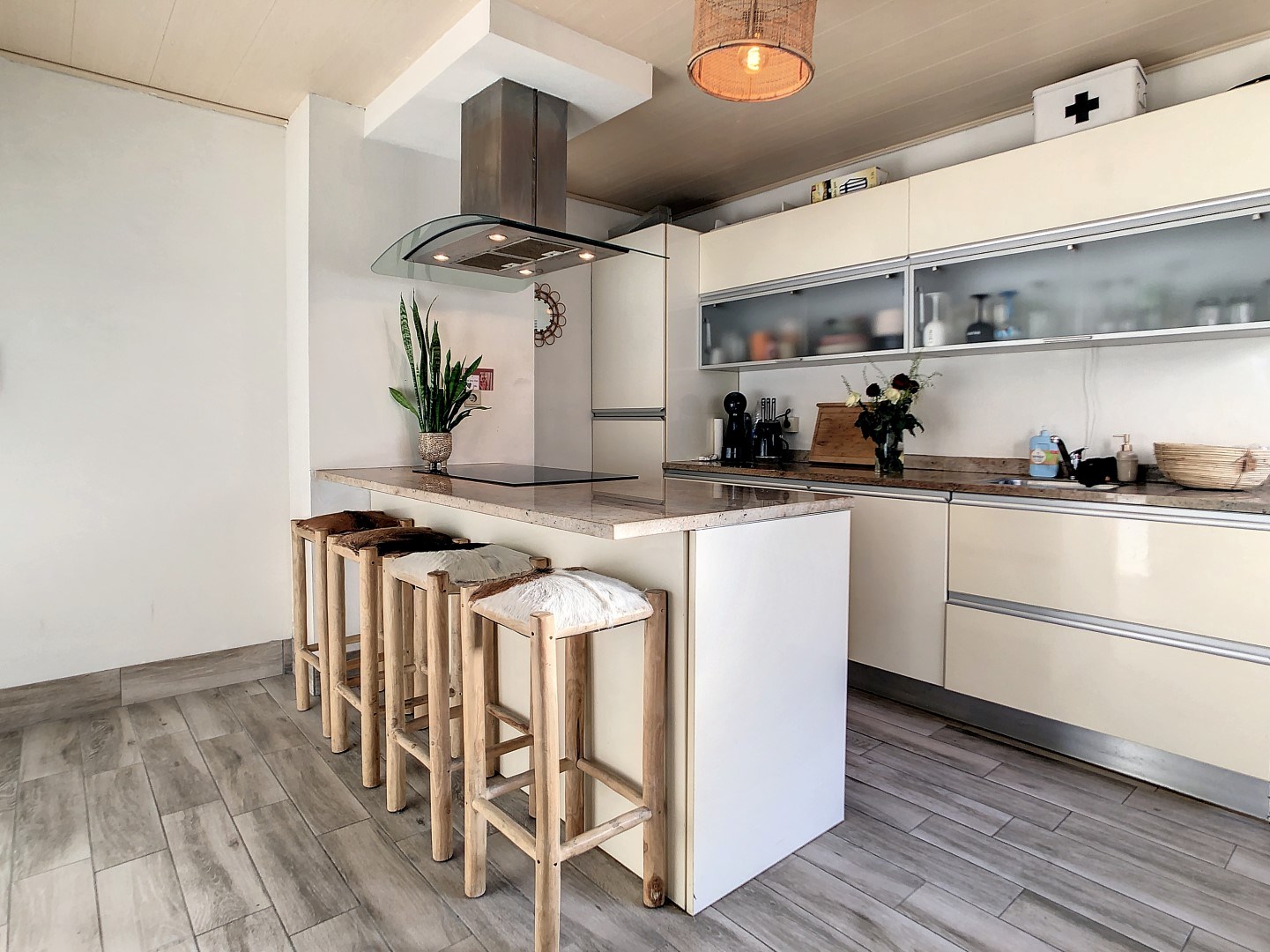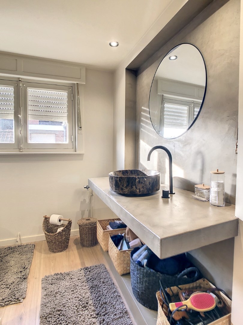 Volledig vernieuwde badkamer , afgewerkt met duurzame materialen; lavabo, inloopdouche en toilet én 3 ruime slaapkamers.