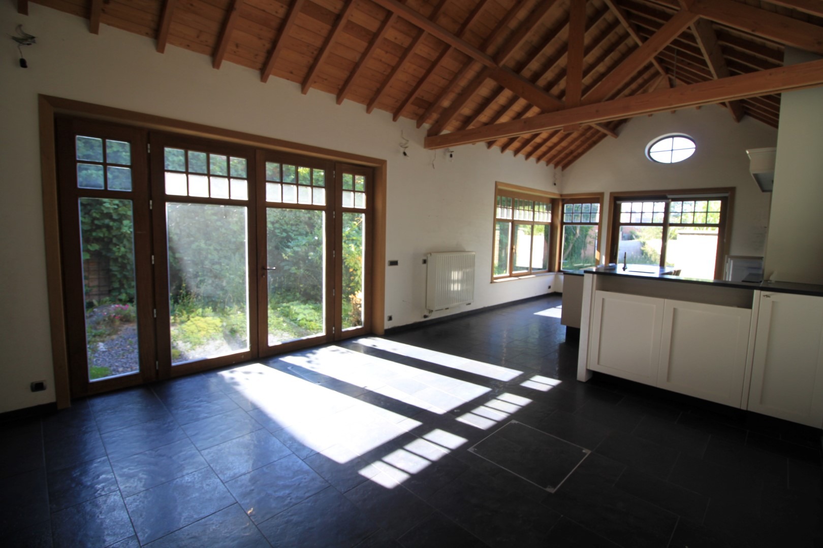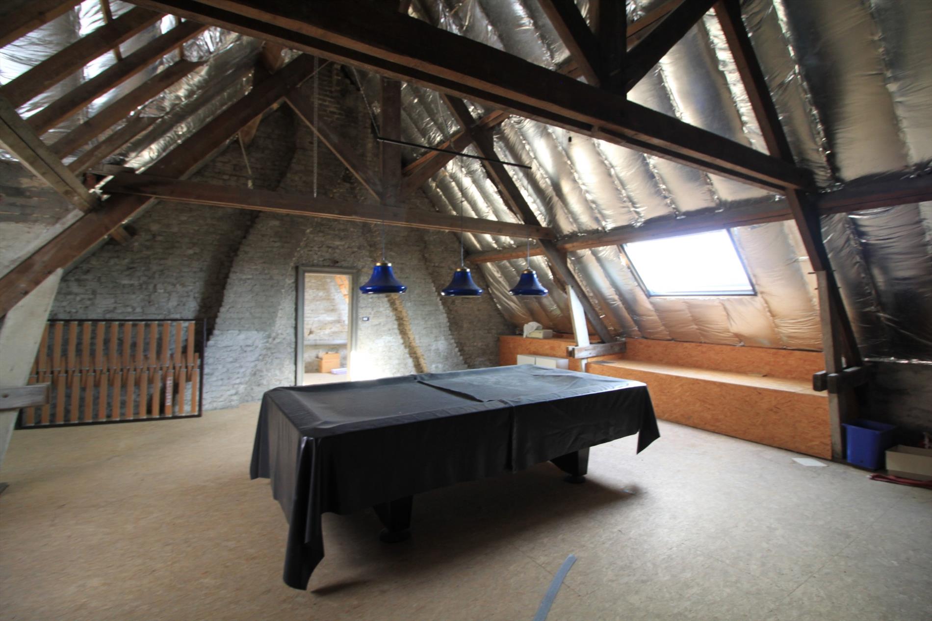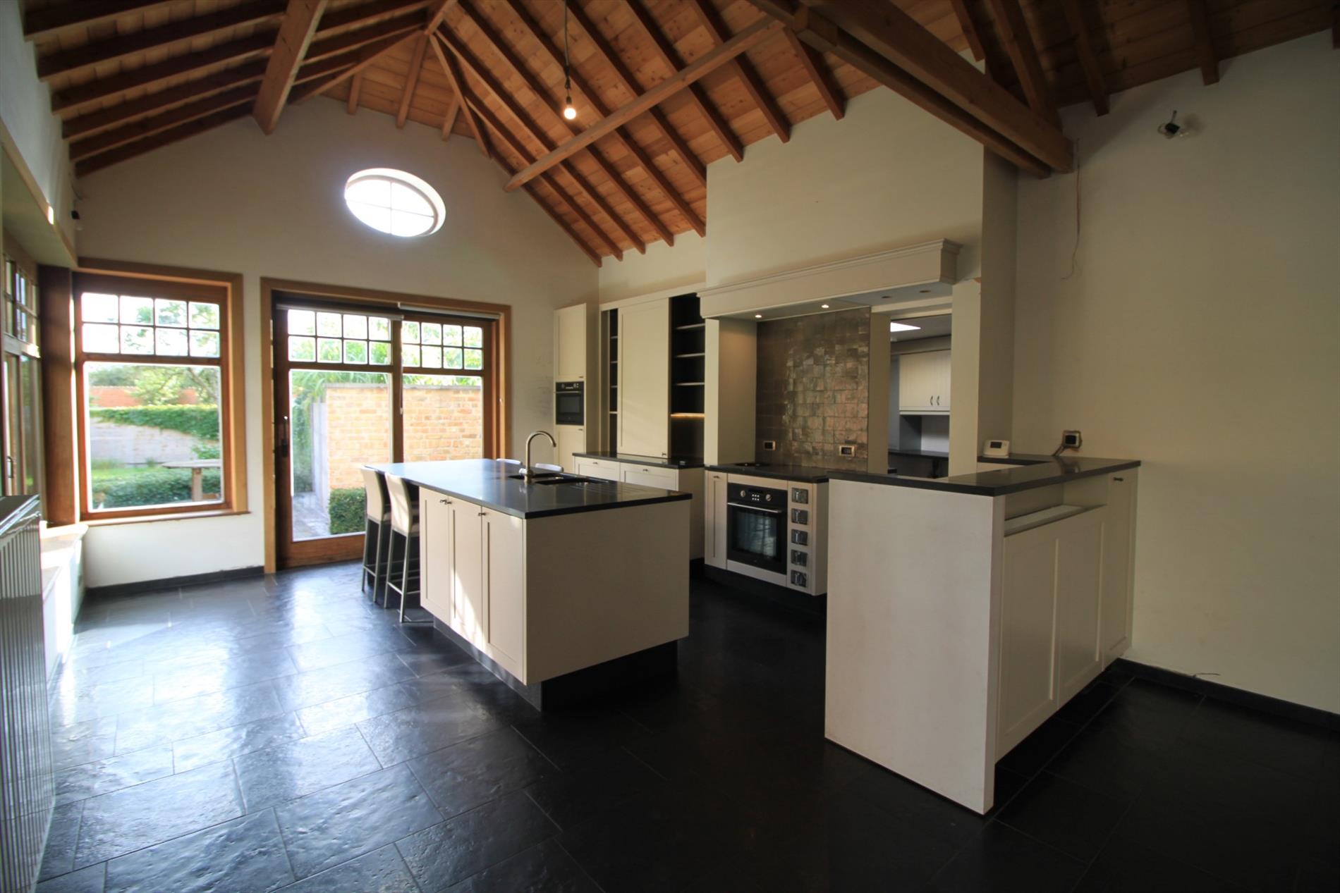 In de leefruimte & keuken hebt u een heel open gevoel dankzij de hoge plafonds die tot in de nok werden afgewerkt!
