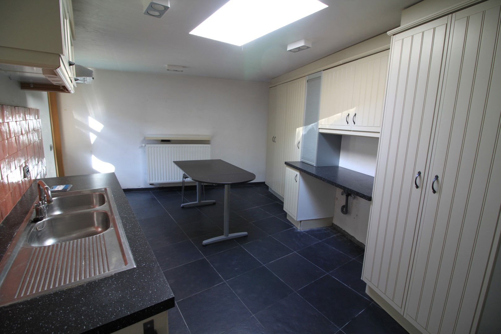 Deze verrassend ruime woning is gelegen in het centrum van Langemark, in de nabijheid van winkels, openbaar vervoer,... De woning zelf bestaat uit inkomhal en bureau-ruimte (die perfect kan dienen tot burelen of praktijk voor zelfstandigen gezien een ontvangstruimte, apart toilet en kitchenette is voorzien). Daarna kan u zich begeven in de lichtrijke leefruimte met open en volledig ingerichte keuken die tevens volledig uitgeeft op uw terras met tuin, eetplaats, ruime wasplaats/bijkeuken, badkamer (dubbele lavabo, inloopdouche en toilet) en een garage.