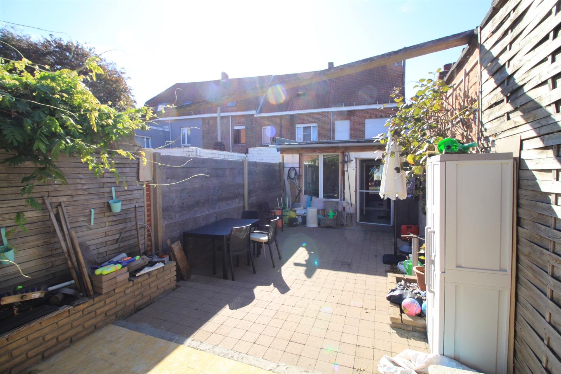 In het centrum van Meulebeke vinden we deze knusse rijwoning terug. Bij het betreden van de woning komen we in de inkomhal die toegang geeft aan de woonkamer die verwarmd wordt met gaskachels en voorzien is van dubbele beglazing. Aansluitende aan de woonkamer bevindt zich de leefkeuken die door de grote lichtkoepels voorzien is van veel daglicht. Achteraan de woning bevindt zich nog de badkamer, gastentoilet en bergruimte. Boven beschikt de woning over 3 slaapkamers en een zolderruimte die toegankelijk is via de vaste trap.