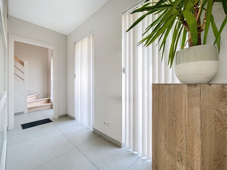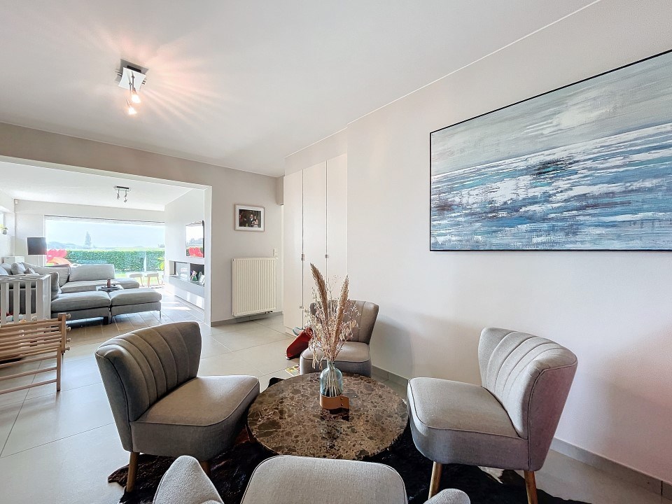 Lichte en Ruime Leefruimtes: De mooie inkom leidt naar een leefruimte en grote leefkeuken die baden in natuurlijk licht. De keuken is volledig geïnstalleerd met alle toestellen en biedt een prachtig uitzicht op de tuin.