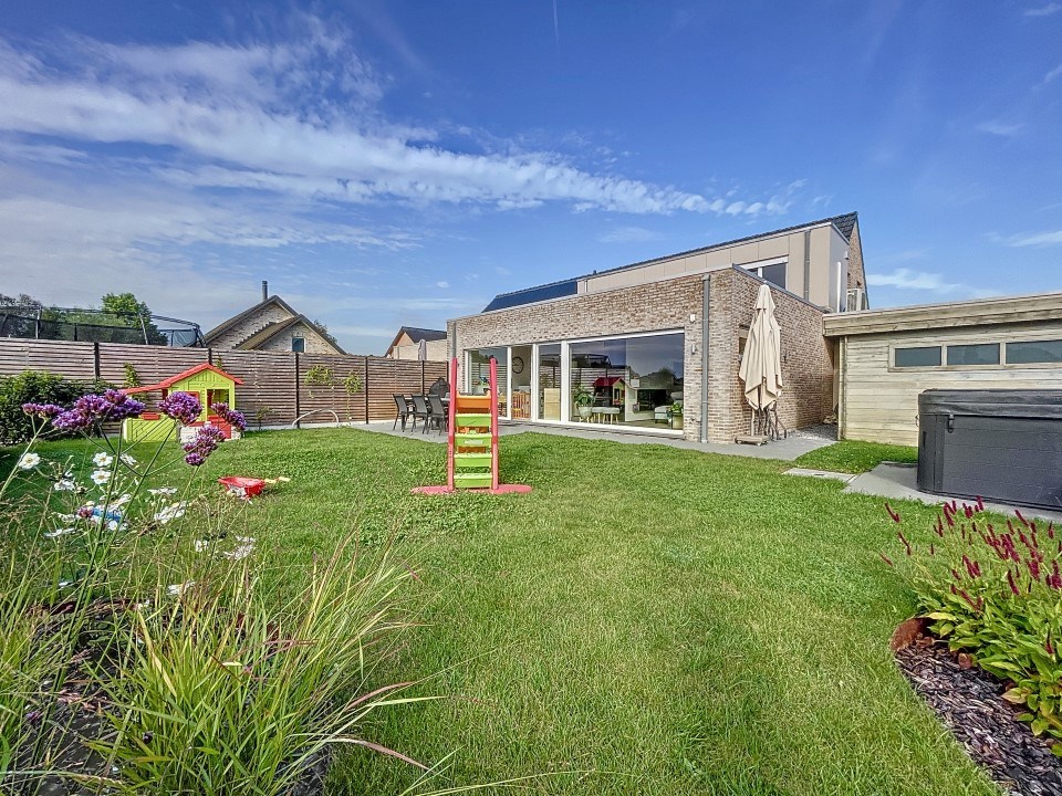 Welkom bij deze prachtige woning die alles biedt wat je zoekt voor hedendaags comfort en stijlvol wonen. Deze recente half-open woning is gelegen in een rustige buurt en beschikt over een zuidgerichte tuin met een terras dat een open uitzicht biedt over de velden.