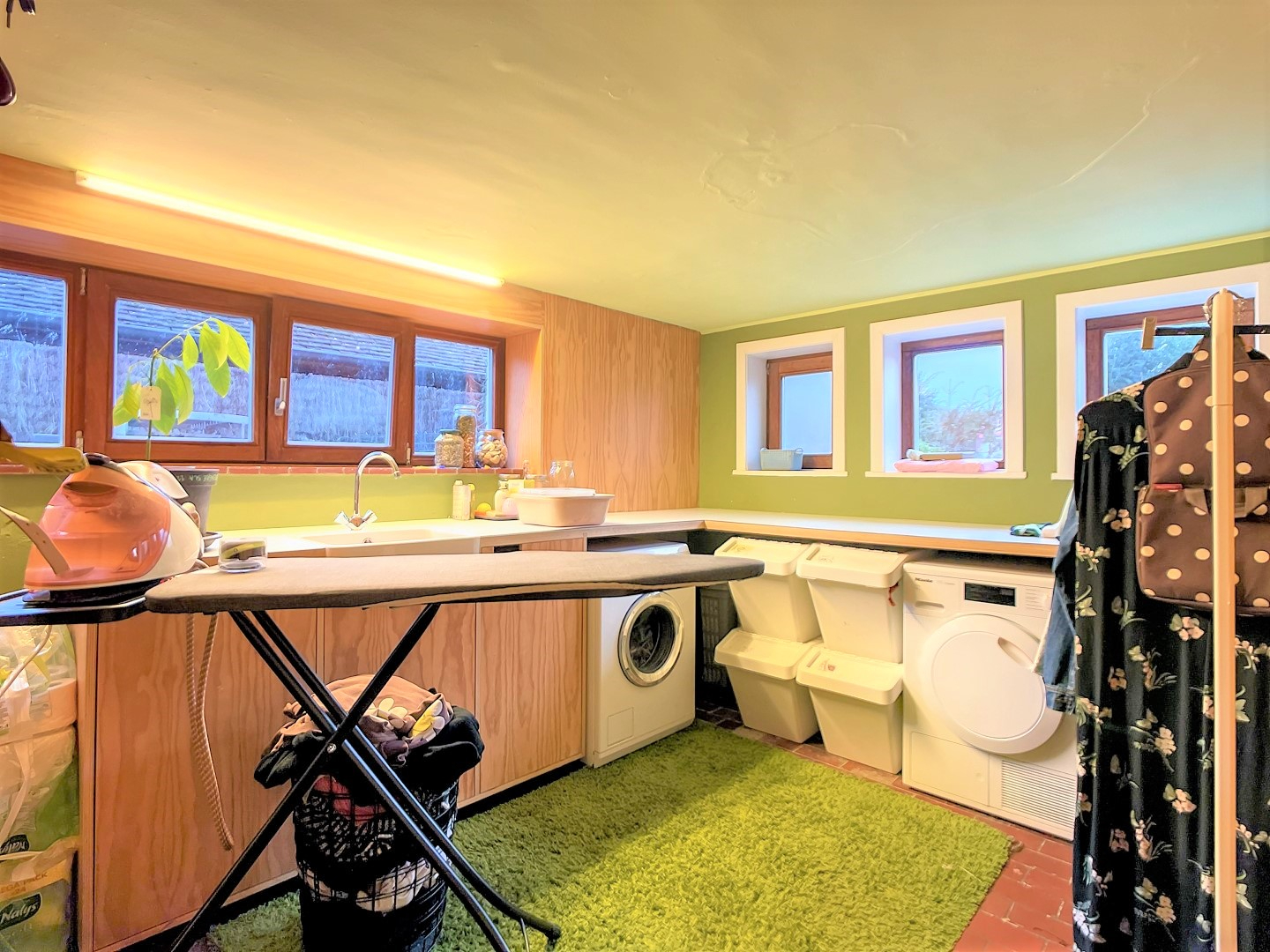 * ingerichte keuken (toestellen Miele) met eethoek die uitgeeft op de ZW-georiënteerde tuin en terras