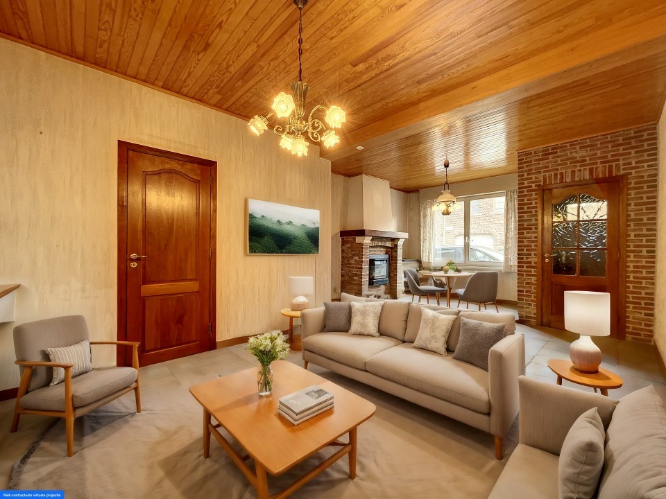 Via de inkom, komen we in de leefruimte met half-open keuken.