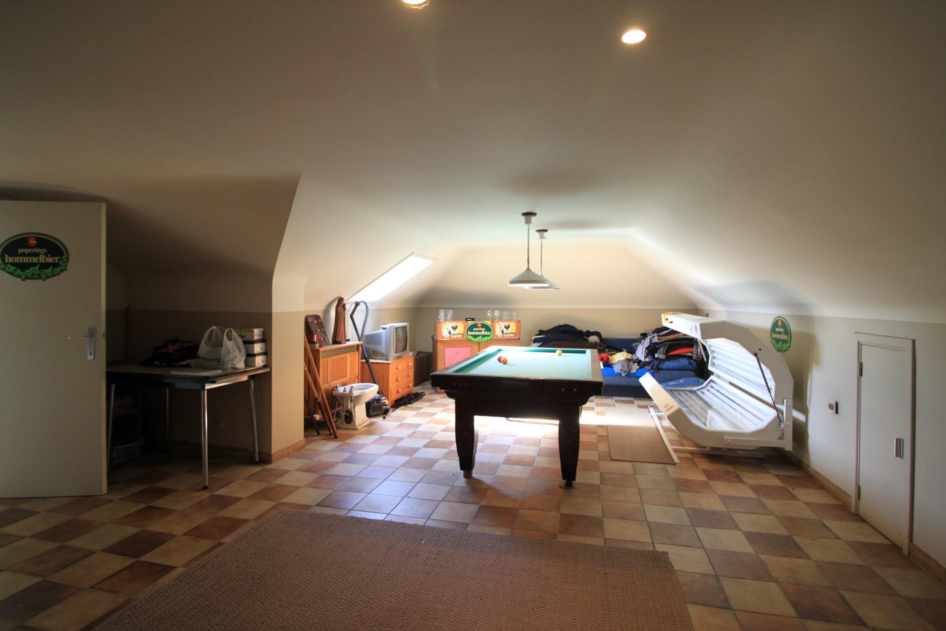 De grote zolder is bereikbaar via vaste trap.