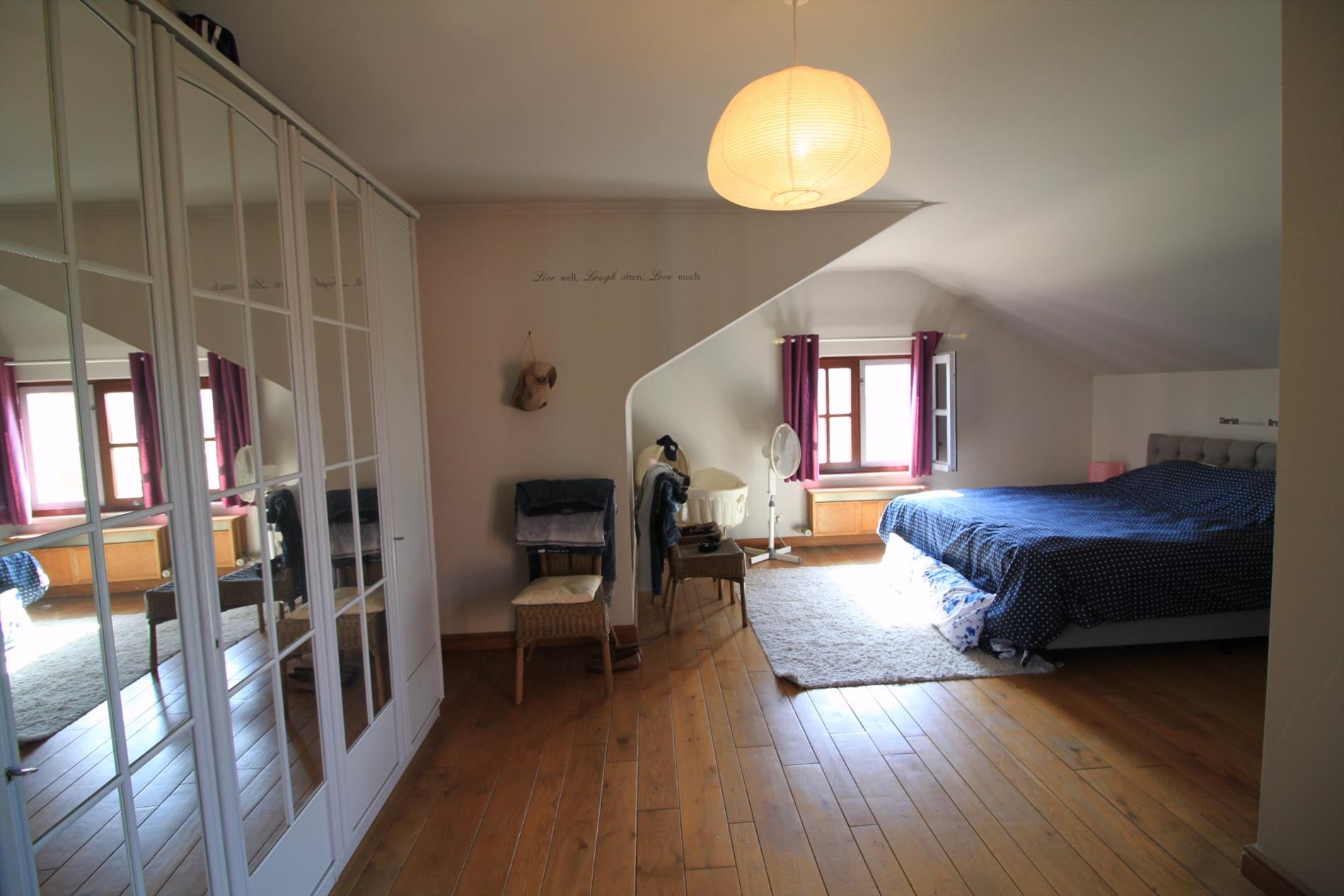 De prachtige overloop biedt u toegang tot 4 ruime slaapkamers. De badkamer biedt u het moderne comfort gecombineerd met originele elementen : u beschikt over 2 originele lavabo's, een ligbad en een afzonderlijke inloopdouche. Deze verdieping omvat tevens een wasruimte en aansluitend een grote hobbyruimte.