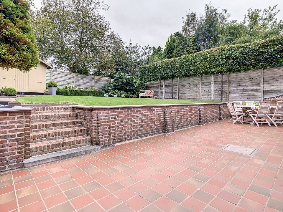 * zuidgerichte tuin met terras, gemetste barbecue en tuinhuis