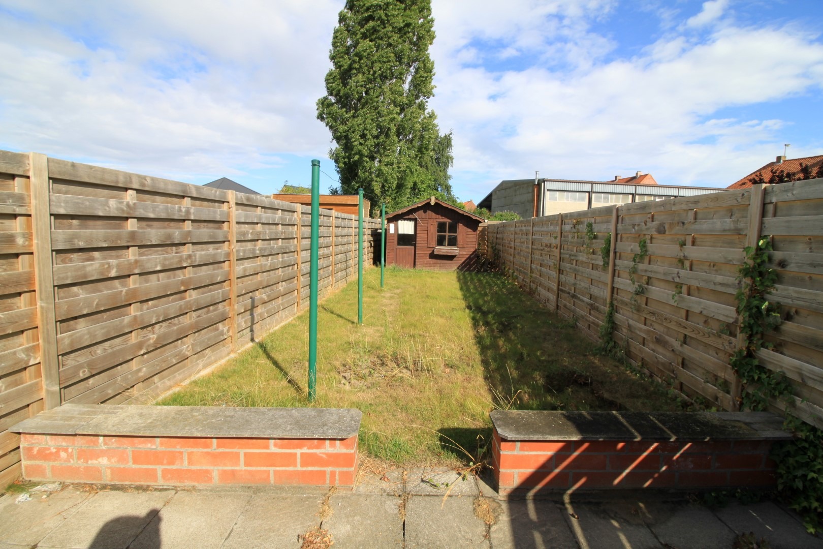 De woning omvat inkomhal, leefruimte, keuken, badkamer (douche en lavabo), veranda, terras met tuin en berging. Op het eerste verdiep bevinden zich 2 slaapkamers. (EPC 733kWh/m²jaar)