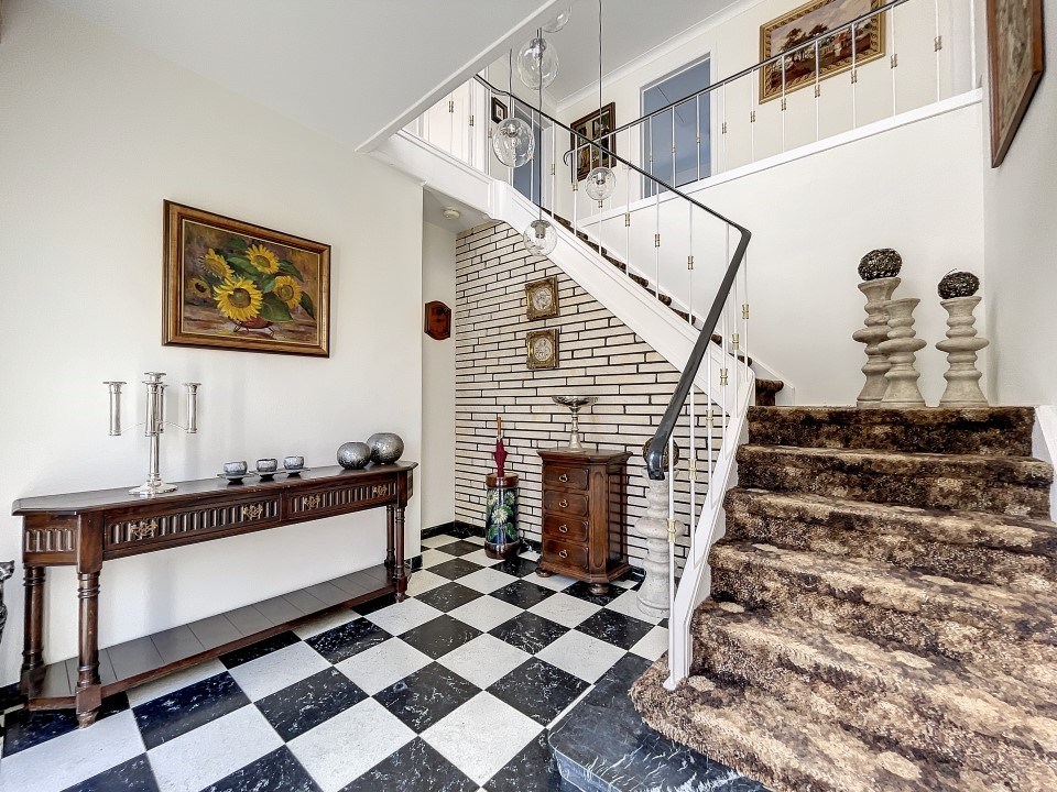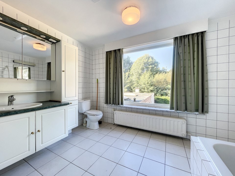 Via de mooie trap, komen we op het eerste verdiep, waar er 1 uitzonderlijk grote kamer is (makkelijk om te bouwen tot meerdere kamers), 2 2-persoonskamers en een badkamer.